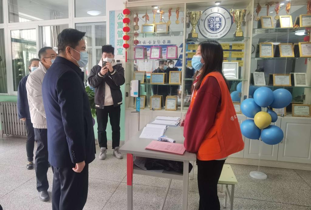 校党委书记狄生奎深入一线走访新生报到咨询处、学生公寓、学生餐厅,实地查看学生返校报到、校园安全、后勤保障情况,有关负责同志陪同走访。