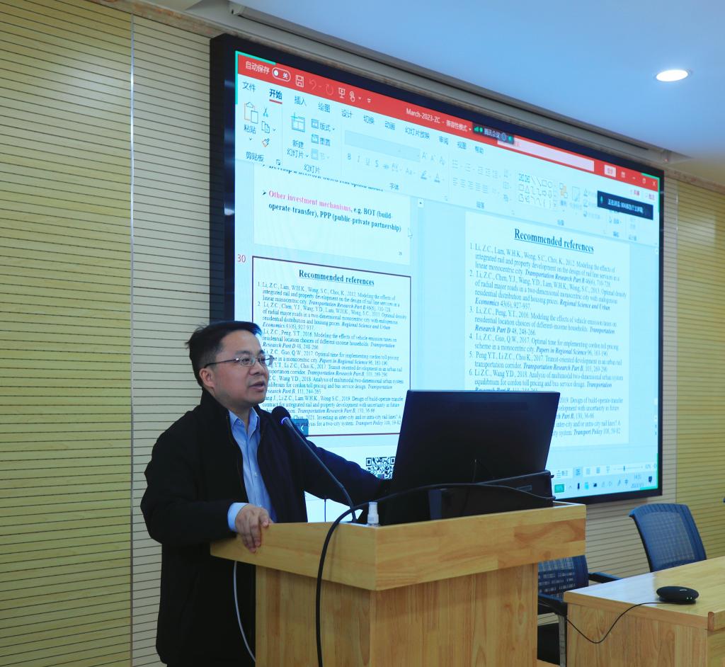 签约仪式结束后,杨立兴、李志纯两位教授参观了交通运输学院实验室并开展了学术讲座。李志纯作了题为《交通基础建设融资与城市经济》的报告,交通运输学院教师及研究生通过线上线下方式共同聆听报告。李志纯指出,要将城市经济的研究与城市交通的研究相结合,关注投资的时机和预算模型的使用,聚焦交通经济学以及提高对相关研究领域数据来源的重视。