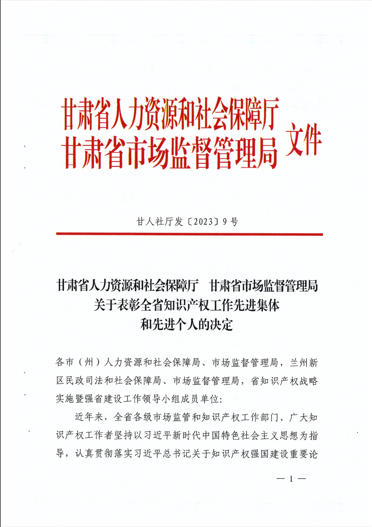 近日,甘肃省人力资源和社会保障厅、甘肃省市场监督管理局联合发布《关于表彰全省知识产权工作先进集体和先进个人的决定》,兰州交通大学科学技术处荣获“全省知识产权工作先进集体”称号。
