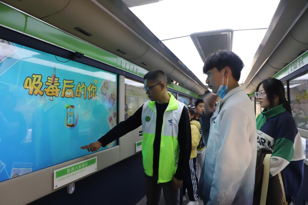 活动现场,图文并茂的禁毒知识展板、内容详实的车体宣传短片、精细逼真的毒品仿真模型、寓教于乐的禁毒科普游戏、沉浸式的VR实景毒品危害体验,为广大师生带来了一场丰盛难得的禁毒科普知识盛宴。