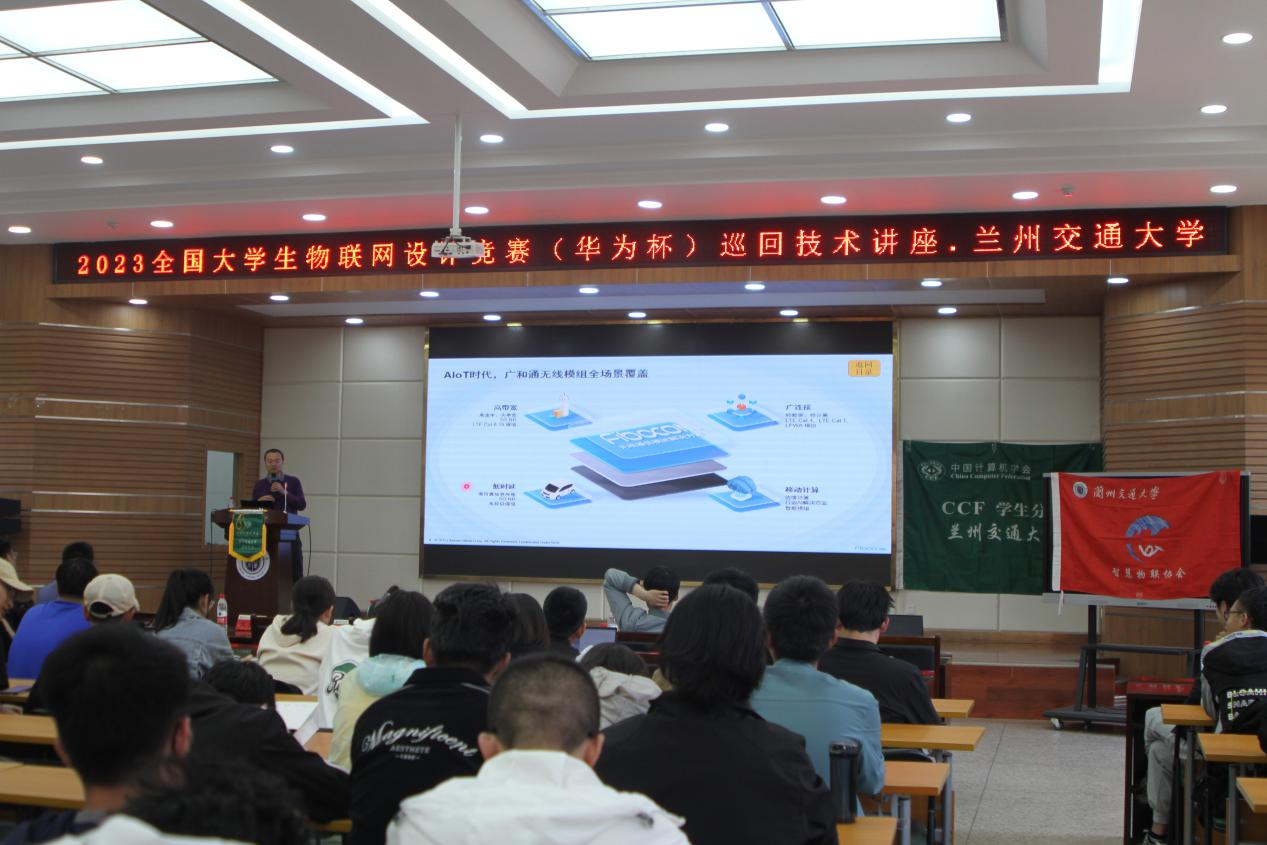 5月12日,2023年全国大学生物联网设计竞赛(华为杯)走进高校巡回技术讲座宣传活动在我校第二教学楼学术报告厅举办。来自兰州交通大学、兰州理工大学、西北师范大学、西北民族大学、兰州工业学院等省内高校的二百余名师生参加了本次活动。