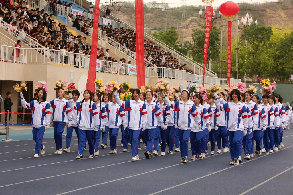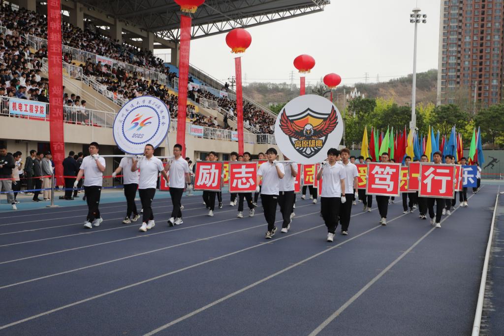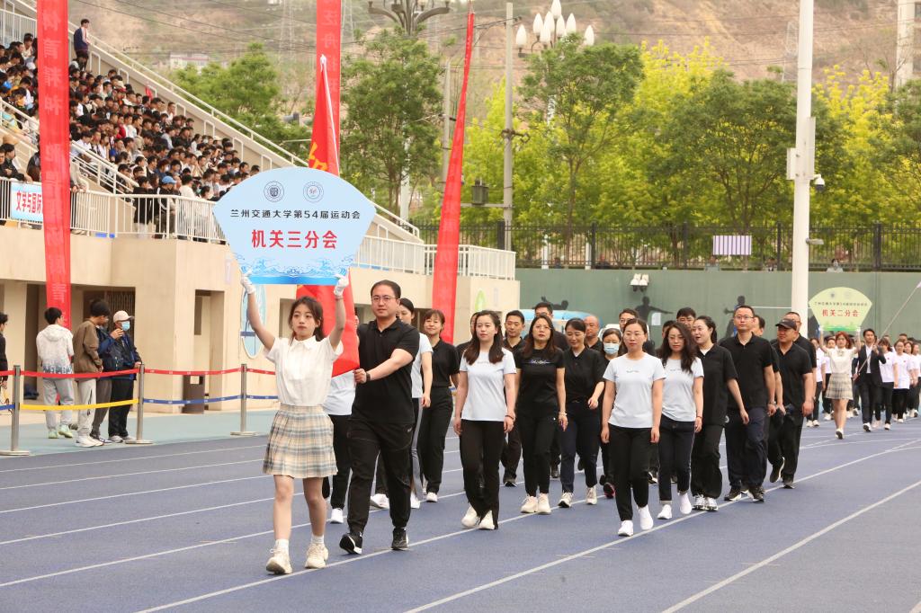 入场人员精神抖擞、步伐整齐、口号嘹亮,赢得在场观众阵阵掌声与喝彩。各学院入场队伍结合自身专业特色,创意编排的方阵风采展示,为入场环节带来了精彩的瞬间。青春洋溢的笑脸、迎风飞舞的彩旗、鲜艳夺目的花束,彰显出兰州交大人自信豪迈、朝气蓬勃的精神面貌和奋发有为的青春风采。