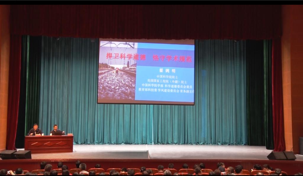 会议特邀中国科学院院士、美国工程院外籍院士、中国科学院学部科学道德委员会委员、教育部科技委学风建设与科学传播委员会常务副主任翟婉明教授担任主讲嘉宾,副校长、研究生院院长贡力主持报告会。
