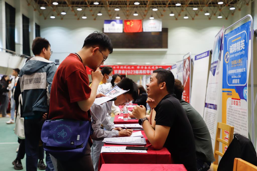 悠悠万事,民生为大。为深入贯彻党中央、国务院关于做好高校毕业生就业工作重要决策部署,领会习近平新时代中国特色社会主义思想主题教育讲话精神,落实甘肃省委、省政府和省教育厅关于做好全省2023届高校毕业生就业促进工作的指示,扎实开展“三抓三促”行动,促进高校毕业生顺利就业,尽早就业。5月26日,由甘肃省教育厅、甘肃省工业和信息化厅主办,兰州交通大学承办的教育部2023届高校毕业生就业促进周系列活动“‘毅往职前’—甘肃省2023届高校毕业生双向选择洽谈会”在我校天佑体育馆举行,此次双选会由甘肃省人力资源市场全程直播,为全省高校毕业生带岗助力。