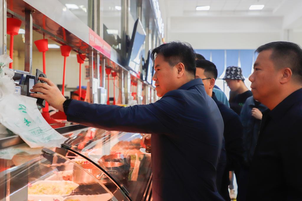 为深入开展领导干部“七进”工作,进一步强化师生联系,及时关注学生动态,时刻关心学生冷暖,5月31日中午,学校党委书记狄生奎走进南苑学生食堂与同学们共进午餐,面对面交流,零距离沟通,听心声、话家常。