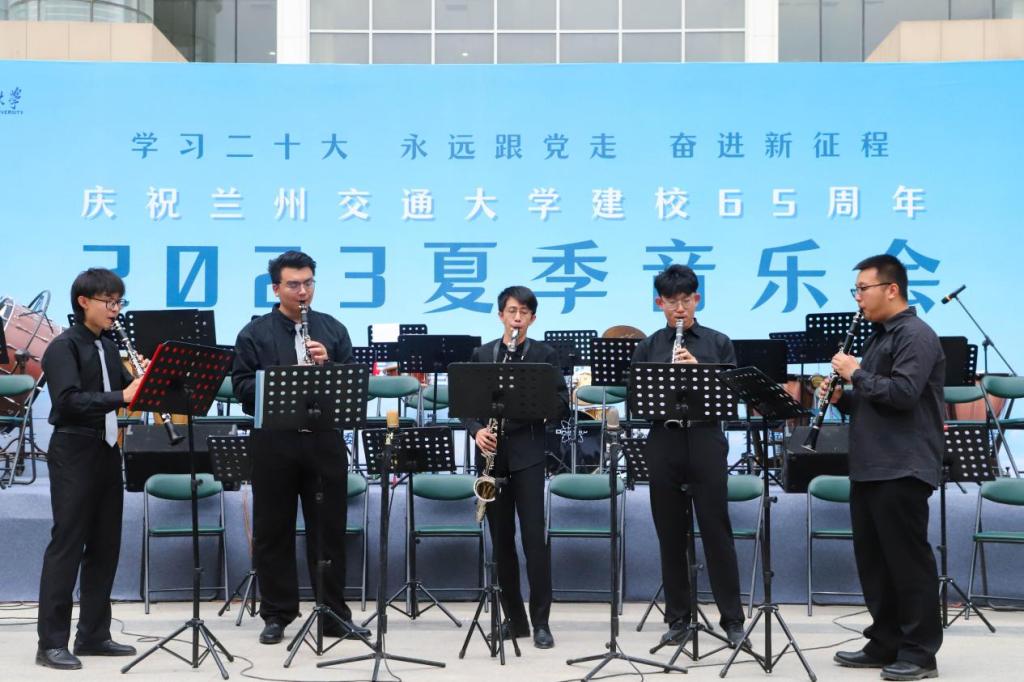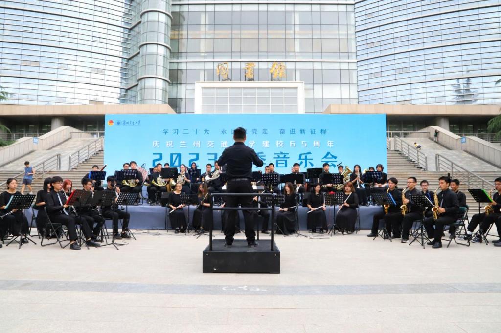 为深入学习宣传党的二十大精神,庆祝我校建校65周年,6月11日,兰州交通大学大学生管乐乐团在逸夫图书馆前举办了“学习二十大 永远跟党走 奋进新征程”2023夏季音乐会。
