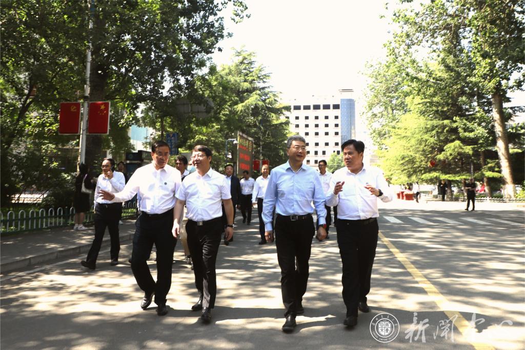 吴岩一行参观了学校唐臣广场、天佑园。党委书记狄生奎、校长李引珍分别介绍了学校历史沿革、发展现状、人才培养、科学研究等情况,汇报了学校第十二次党代会提出的“一个新突破”“五个新提升”“两个新高地”发展目标,以及学校正在开展的构建以“思政课+”六位一体为核心的“163”“大思政课”建设体系工作推进情况。