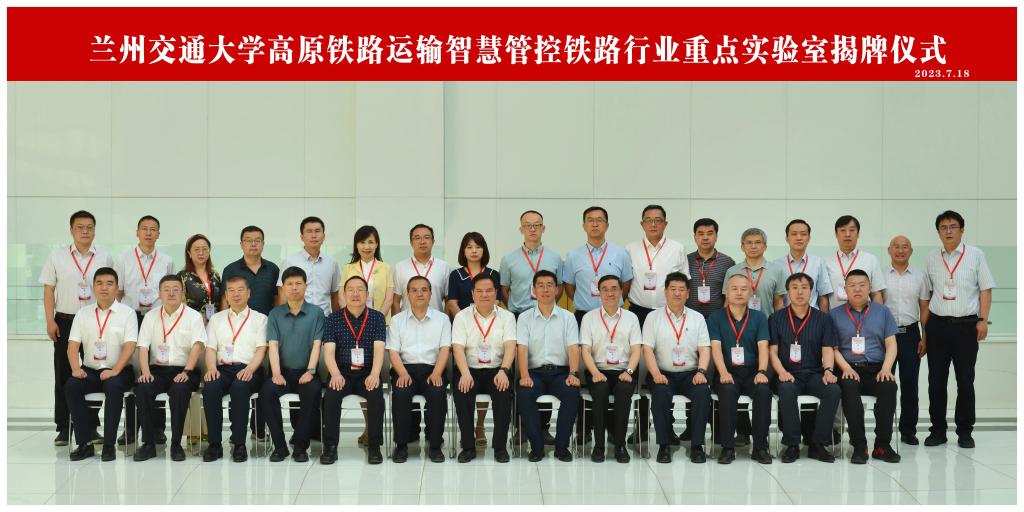 国家铁路局科法司科技管理处赵秀处长、国家铁路局兰州铁路监督管理局侯爵副局长、中国铁路兰州局集团有限公司唐文国副总经理、兰州交通大学党建武副校长共同为高原铁路运输智慧管控铁路行业重点实验室揭牌。
