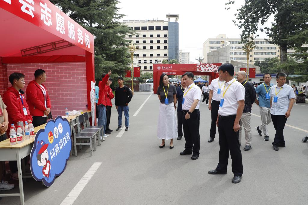 下午,校党委书记狄生奎来到新生报到现场,全流程视察和指导迎新工作,与报到新生及家长亲切交流、合影留念,慰问工作人员和志愿者。校党委副书记贡力、副校长闫浩文及相关职能部门负责人陪同。