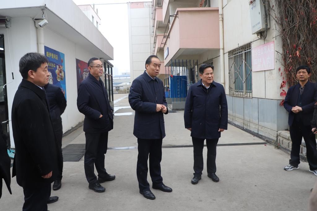 牛成喆一行先后来到学校23号公寓楼建设工地、桃海学生公寓、天佑铁路科普基地展览馆、材料学院实验中心、分析测试中心、附属小学进行实地调研,并详细听取了学校学生住宿及公寓建设情况、实验室现状和实验室建设规划、附属中小学发展概况的汇报。