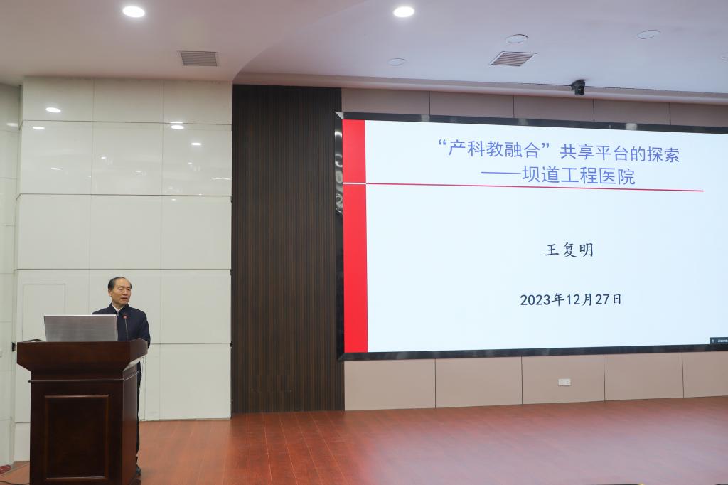 王复明作了题为《“产科教融合”共享平台的探索——坝道工程医院》的精彩报告。针对工程基础设施“健康检测、病害诊断、修复加固、应急抢险”的迫切需求,王复明提出“工程医院”理念。坝道工程医院按照党的二十大部署要求,聚焦“产教融合、职普融通、科教融汇”迫切需求,提出了“政校企合作、多形式投入”新模式,搭建了“跨行业协同、产科教融合”新平台,构建了“全天候开放、国内外共享”新机制。