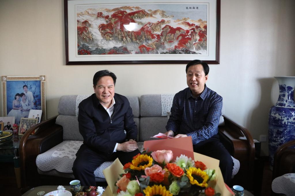 在离休干部王庆义和退休领导马军党家中,狄生奎与他们亲切交流,拉家常、问冷暖、询建议、话发展,详细了解他们的健康状况和生活情况,叮嘱他们好好保重身体。同时,向他们介绍了学校近期的重点工作和发展思路,由衷地感谢他们一直以来对学校工作的关心与支持,希望他们继续发挥余热,积极建言献策,为推动学校高质量发展贡献更多智慧和力量。