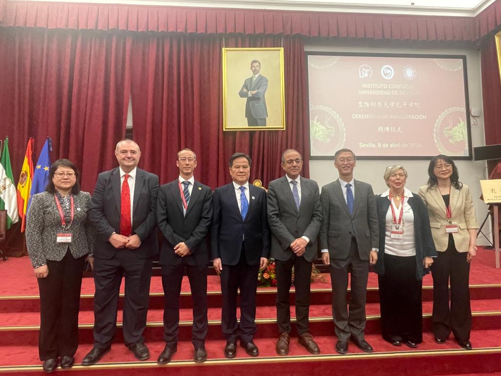 西班牙当地时间4月8日,兰州交通大学与西班牙塞维利亚大学共建孔子学院揭牌仪式在塞维利亚大学校长楼隆重举行,兰州交通大学党委书记狄生奎与塞维利亚大学校长米格尔·安格尔·卡斯特罗·阿罗约共同为孔子学院揭牌。