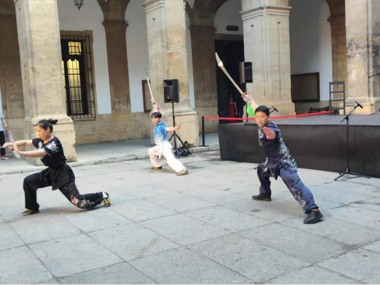 西班牙当地时间4月8日,由我校国际交流中心筹划组织,土木工程学院、外国语学院、艺术设计学院和体育部师生精心编排的中国传统文化展演活动,在西班牙塞维利亚大学成功举办。我校党委书记狄生奎、塞维利亚大学校长米格尔·安格尔·卡斯特罗·阿罗约、中国驻西班牙大使姚敬、塞维利亚大学副校长卡门·瓦尔加斯,我校国际交流中心负责人以及在西孔子学院院长等中外嘉宾与塞维利亚大学师生共同观看了文化展演活动。