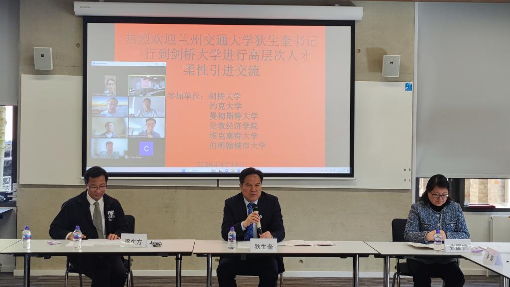 参观结束后,狄生奎与来自剑桥大学、约克大学、曼彻斯特大学、埃克塞特大学、伦敦经济学院的教授和青年学者们进行了友好深入的交流,向他们介绍了兰州交通大学人才柔性引进政策及实践研修、教师交流访学等方面的内容。狄生奎表示,兰州交通大学作为中国西部颇具特色的轨道交通院校,致力于为“一带一路”沿线国家铁路建设培养轨道交通方面的人才。学校希望与剑桥大学携手共进,构建跨越山河促进交流的桥梁,促进两校友好合作,将两校交流平台营造成为中西互鉴的纽带。