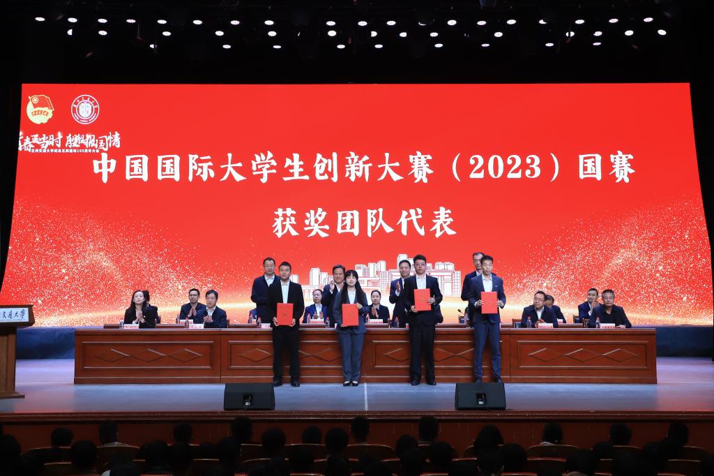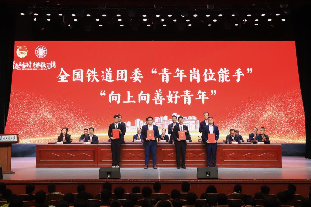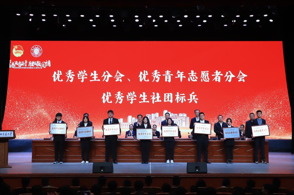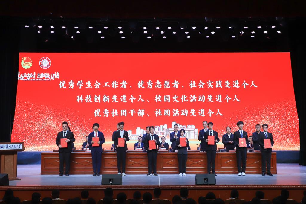 校领导分别为国家奖学金获奖代表;中国国际大学生创新大赛(2023)国赛获奖团队、第十八届“挑战杯”全国大学生课外学术科技作品竞赛获奖团队;詹天佑奖学金获奖者、茅以升铁道教育希望之星奖获奖者;校级“社会实践先进个人”“校园文化活动先进个人”“科技创新先进个人”“优秀学生会工作者”“优秀社团干部”“社团活动先进个人”和“优秀志愿者”获奖代表;校级“优秀青年志愿者分会”、校级“优秀学生社团标兵”、校级“优秀学生分会”获奖代表;校级“优秀共青团干部”和“优秀共青团员”获奖代表;校级“五四红旗团委”“五四红旗团支部”获奖代表;2023年暑期“三下乡”社会实践优秀项目及个人获奖代表;省级“优秀共青团干部”、校级“优秀专职共青团干部”获奖者;全国铁道团委青年岗位能手、“向上向善”好青年获奖者分别颁发了奖项。