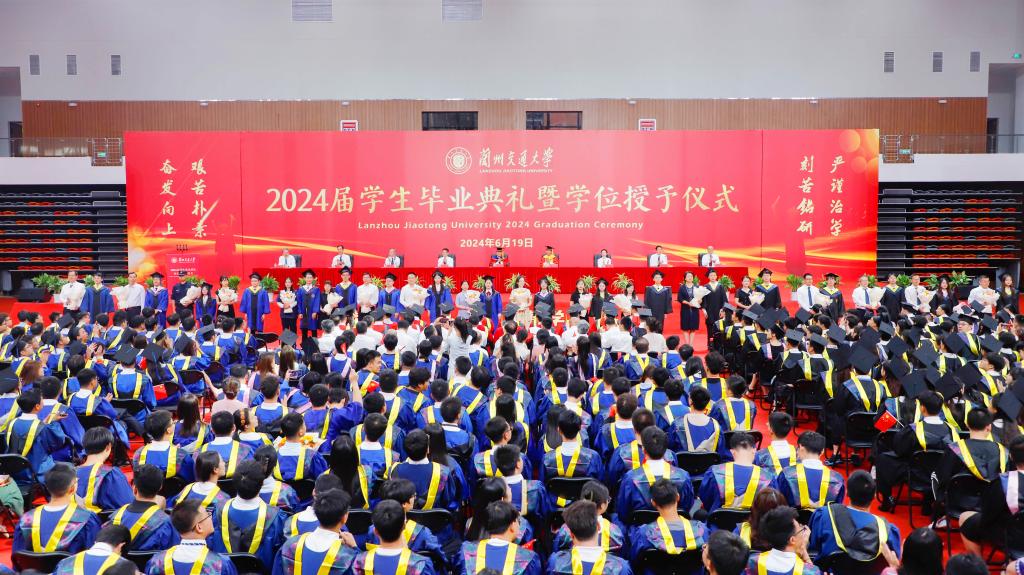 来日方长暂作别,循光而往踏歌行。6月19日上午,兰州交通大学2024年毕业典礼暨学位授予仪式在北校区体育馆隆重举行。全校8000余名学子圆满完成学业将奔赴五湖四海,开启属于自己的锦绣前程。