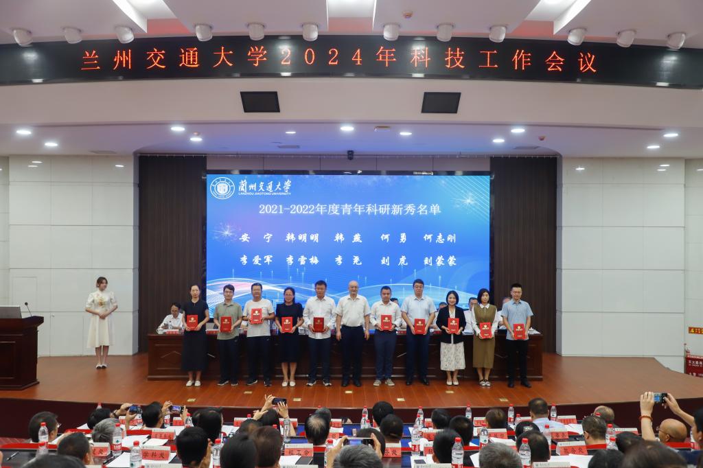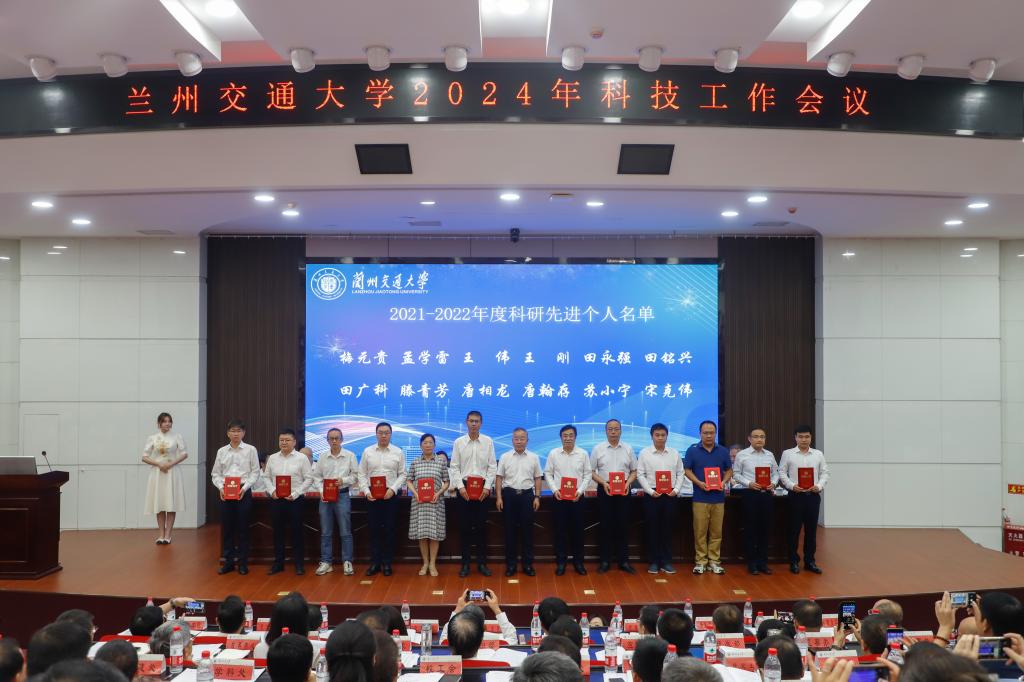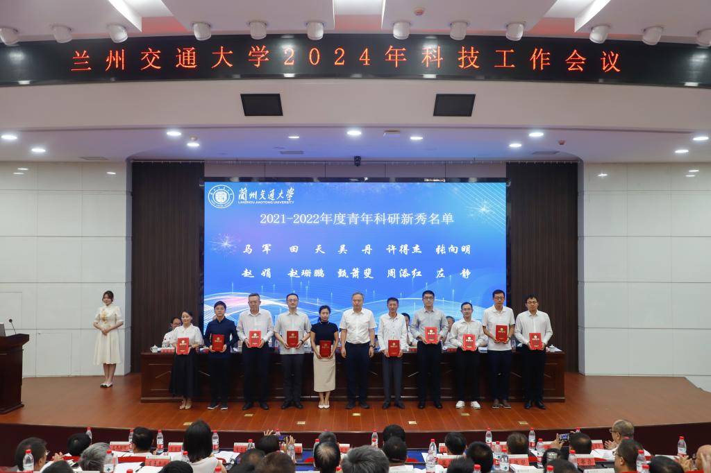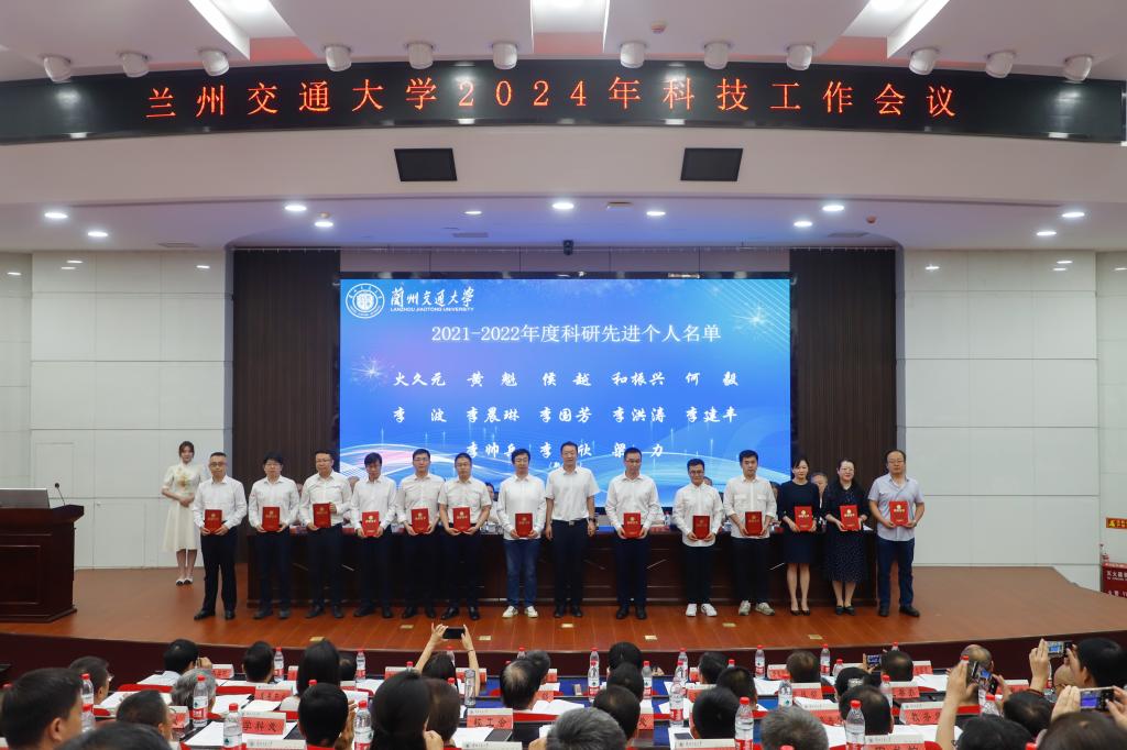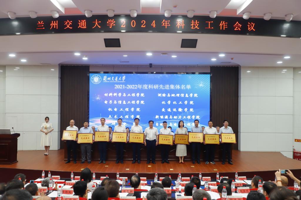 校党委副书记王爱平宣读了《关于表彰奖励兰州交通大学2021-2022年度科研先进集体、科研先进个人、青年科研新秀和科研管理先进个人的决定》。在热烈而庄重的气氛中,与会校领导向10个科研先进集体、50位科研先进个人、20位青年科研新秀及15位科研管理先进工作者颁发了奖牌及荣誉证书。