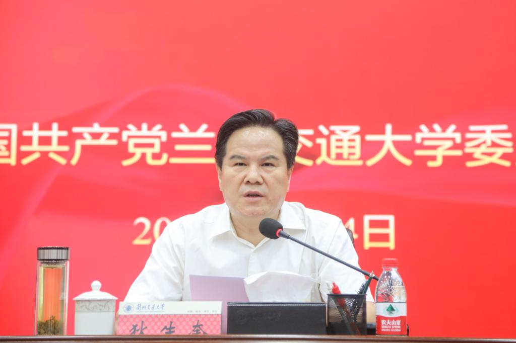 狄生奎强调,全校上下要持续深入学习习近平总书记关于教育的重要论述,特别是对甘肃重要讲话重要指示批示精神,主动融入甘肃新时代高等教育改革先行区建设,主动服务甘肃“四强”行动,锚定学校“1152”发展目标,对标对表学校“三抓三促”行动重点工作任务台账,确保谋一件干一件、做一件成一件,坚持一张蓝图绘到底。全体党员干部要时刻保持“赶考”的清醒,在用心学纪中进一步砥砺忠诚品格,在准确知纪中进一步校正思想行动,在对标明纪中进一步提高免疫能力,在严格守纪中进一步强化担当作为,把党纪学习教育成果转化为建设高水平大学的实际行动,以饱满的精神状态和扎实的工作成效,推动学校高水平大学建设再上新台阶。