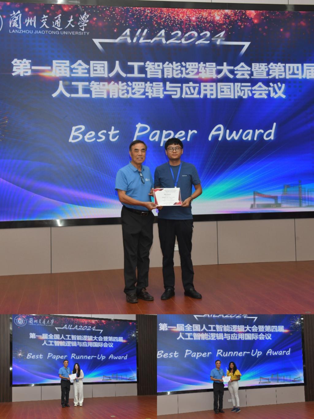 8月11日下午,会议闭幕式在兰州交通大学国际会展中心隆重召开。会议评选出1篇最佳论文奖和2篇最佳论文提名奖。最佳论文奖由来自西北师范大学的乔军胜获得,最佳论文提名奖由来自葡萄牙阿威罗大学的Manisha Jain和中国政法大学的付小轩获得。中国人工智能学会人工智能逻辑专委会荣誉主任委员、深圳大学谢维信教授为获奖者颁奖。