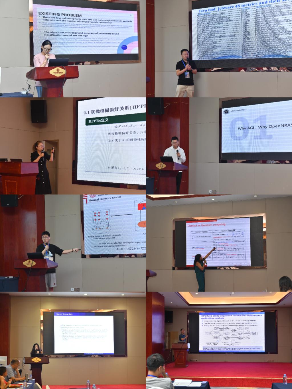 本届会议邀请英国布里斯托大学刘伟茹教授、阿尔斯特大学刘军教授、兰州交通大学严天峰教授、西南大学刘志明教授、美国密歇根大学安娜堡分校张俊教授分别以“从AgentSpeak到强化学习:智能自主代理的发展历程”“自主决策的可信人工智能模型和系统”“智能无线电(IR):一种新的无线通信和频谱感知设计方法”“计算机科学中的逻辑表达”“广义闭合系统”为题作了特邀报告。五位专家的报告高屋建瓴,内容丰富,讲解深入浅出,为与会学者、同学们带来了精彩的学术盛宴。