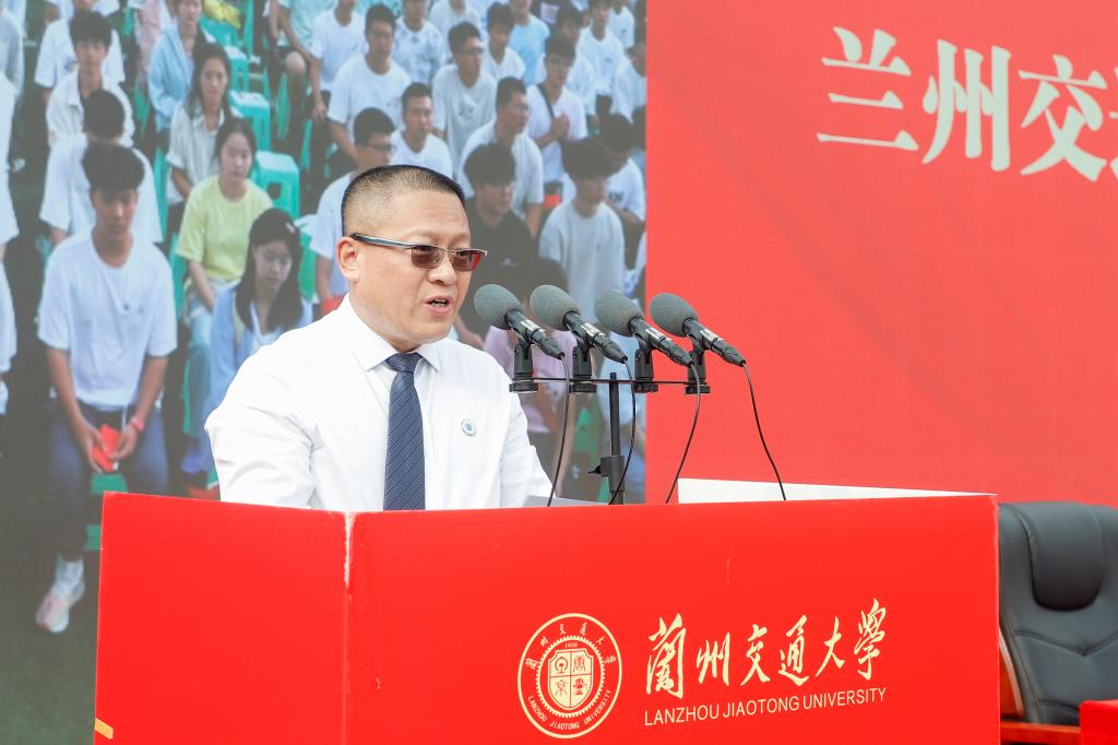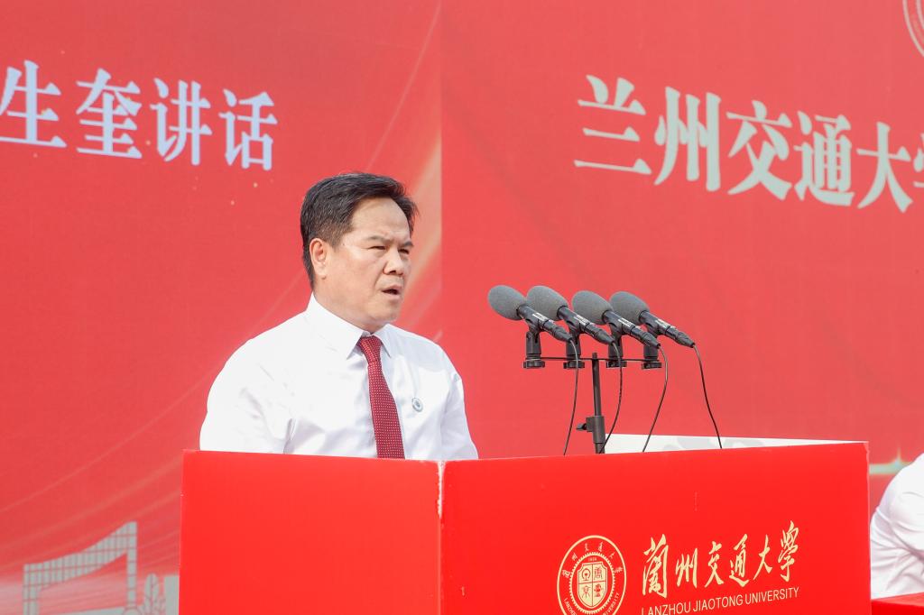 狄生奎代表全校师生员工向全体2024级新生表示衷心的祝贺和热烈的欢迎。他表示,教育兴则国家兴,教育强则国家强。在以中国式现代化全面推进强国建设、民族复兴伟业的关键时期,党的二十届三中全会对统筹推进教育、科技、人才体制机制一体化改革作出重大战略部署。在这场伟大的时代变革中,兰州交通大学如何把握发展机遇,改革创新,实现高质量发展,勇担教育强国,交通强国之重任,需要我们全体师生员工为之共同奋斗。现在,奋斗的接力棒传到了各位同学手中,大家是学校的主人,是责无旁贷的传承者和接班人,更是这个伟大时代的建设者。