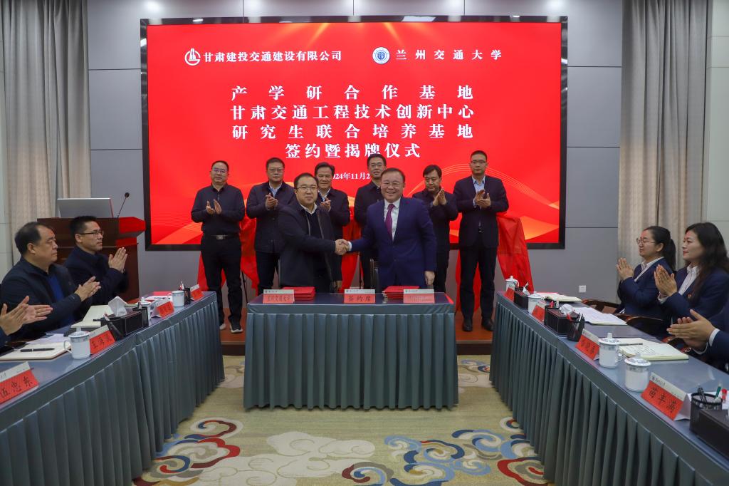 为进一步加强校企合作,拓宽科学研究、成果转化及人才培养渠道,更好地服务地方经济建设,11月27日下午,我校与甘肃建投交通建设有限公司在学校尚德楼三楼中型报告厅举行了合作协议签约仪式。校党委书记狄生奎,甘肃省建设投资(控股)集团有限公司党委书记、董事长马明出席会议并致辞,甘肃省建设投资(控股)集团有限公司党委常委、副总经理冯力强,党委常委、副总经理、党委组织部(人力资源部)部长郭文俊,甘肃建投交通建设有限公司党委书记、董事长苗丰满参加签约仪式,会议由学校党委常委、副校长陈喜春主持。