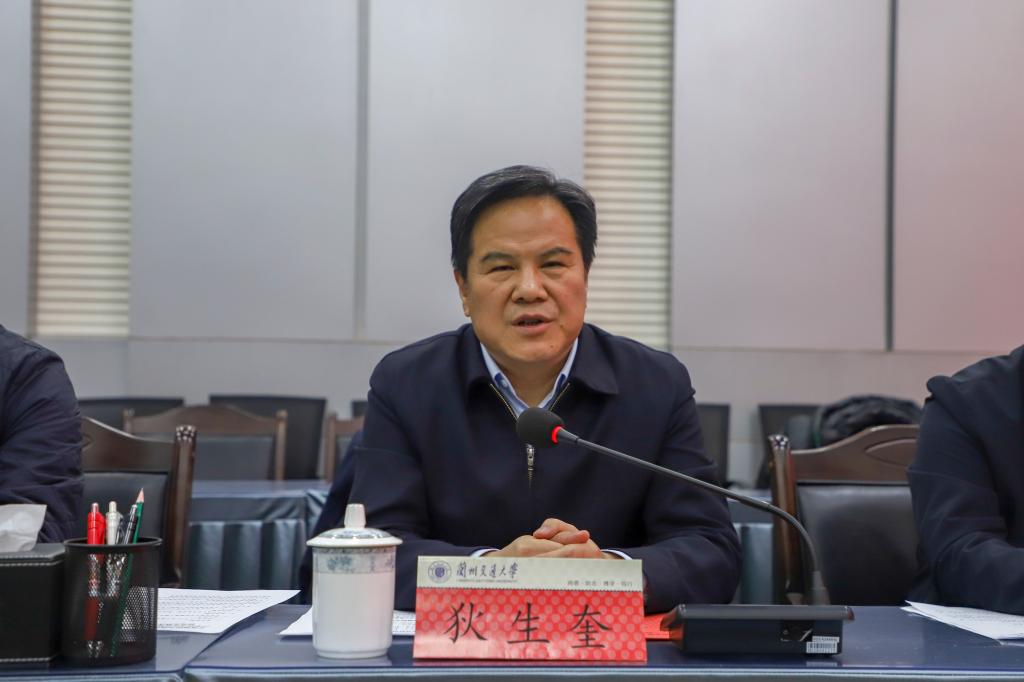 狄生奎对马明董事长一行的到来表示热烈的欢迎,并简要介绍了学校历史沿革与发展现状。他指出,兰州交通大学传承京唐,扎根西北,具有深厚的铁路渊源和特色。66年来,学校始终与祖国同呼吸,与铁路共命运,和甘肃心连心,牢记为党育人、为国育才初心使命,走出了一条以轨道交通为核心的特色办学之路,先后为国家培养了20多万优秀人才。他强调,甘肃建投是一家具有70年历史的老牌国有企业,是甘肃省重点打造的首批国有资本投资公司,为我省交通基础设施建设和高质量发展作出了突出贡献。甘肃建投与学校长期以来保持着良好的合作关系,甘肃建投注重项目质量,重视和高校的合作,接下来学校将和甘肃建投共同深挖合作资源,以总书记提出的新发展理念为引领,通过人才培养、技术合作为抓手,努力推动校企双方合作的深度和广度,大力推进现代化产业体系建设,加快发展新质生产力,在甘肃的重大项目建设中,发挥学校应有的作用。