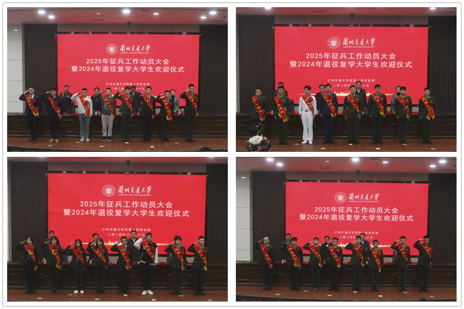 青春献国防,梦想启新程。12月10日下午,兰州交通大学2025年大学生征兵工作动员大会暨2024年退役大学生复学欢迎仪式在尚德楼三楼大报告厅隆重举行。校党委书记狄生奎出席并讲话,安宁区人民武装部负责同志出席大会。大会由校党委常委、副校长苏程主持。