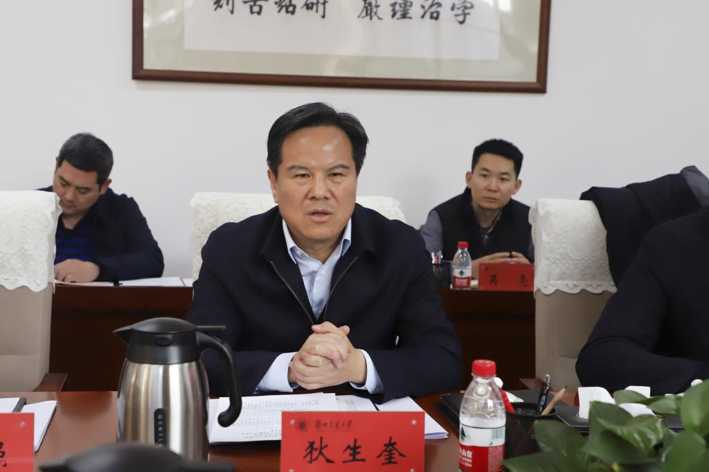 狄生奎对甘肃交通职业技术学院一行到访表示热烈欢迎,并简要介绍了学校发展现状、学科特色和人才培养等情况。他指出,学校传承京唐,扎根西北,不忘初心、牢记使命,坚定地走出了一条以轨道交通为核心的特色办学之路,赢得了良好的办学声誉。当前,学校正牢牢把握新时代西部大开发和甘肃加快建设振兴中西部高等教育改革先行区等重大战略机遇,锚定“1152”奋斗目标,坚定不移走内涵式高质量发展之路,努力为教育强国、交通强国和科教兴省战略实施贡献智慧和力量。甘肃交通职业技术学院秉承“厚德、明理、尚能、笃行”的校训精神,为甘肃交通战线培养了大量管理和技术人才,两校间联系密切、合作基础良好,希望以此次座谈交流为契机进一步探索合作路径。