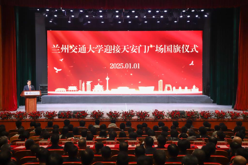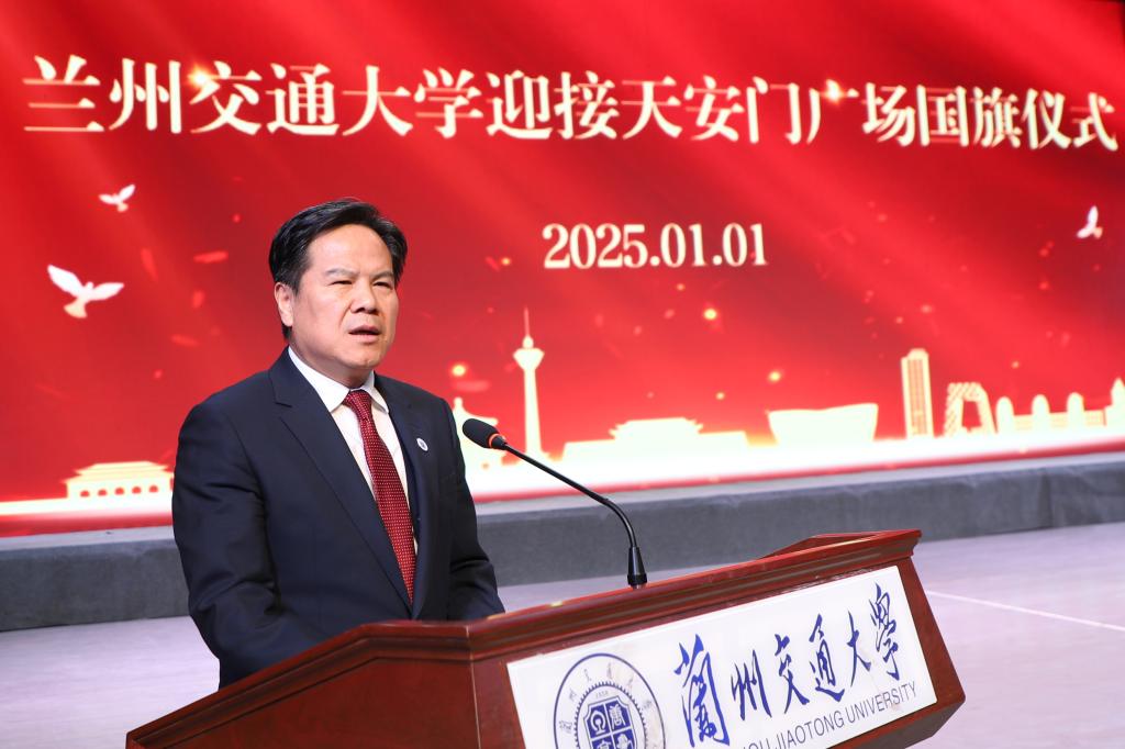 狄生奎在讲话中指出,作为新中国创办的第三所铁路本科院校,学校的设立与发展,与国家铁路建设布局和交通强国战略实施息息相关、紧密相连。66年来,一代代兰交人在爱国精神感召下创立光华、栉风沐雨,形成光荣革命传统和深厚爱国情怀;在五星红旗指引下,始终与党和国家休戚与共、同向同行,展现了中国现代高等教育改革发展的世纪变迁,走过了一条教育报国、团结奋进、追求卓越之路。国旗是国家的象征和标志,彰显着国家和民族的精神,承载着国家的光荣和梦想,此次学校有幸获赠这面国旗,对学校而言意义非凡、弥足珍贵,极大地激发了交大人的爱国情、强国志、报国行,鼓舞全体师生员工传承红色基因、厚植爱国情怀、铸牢教育忠诚、勇担育人使命、凝聚奋进力量,为教育强国、交通强国战略做出新的更大的贡献。
