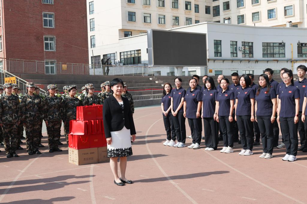 在慰问交流中,聂磊首先对全体承训教官和带队教师的辛勤付出表示衷心感谢,特别对武警甘肃省总队某部长期以来为学校军训工作给予的大力支持和专业指导予以高度评价。她强调,军训是贯彻落实全民国防教育的重要实践,是大学新生迈入校园的“第一课”,更是传承红色基因、厚植爱国情怀、锤炼意志品质的重要载体,对新生成长成才具有不可替代的意义。她希望承训官兵继续发扬人民军队听党指挥、能打胜仗、作风优良的光荣传统,坚持科学组训、严格要求、耐心指导,以过硬的军事素质和良好的军人风范为新生树立榜样;同时,要求带队教师切实履行职责,密切关注新生思想动态与训练状态,做好服务保障工作,与教官协同配合,共同确保军训任务圆满完成。