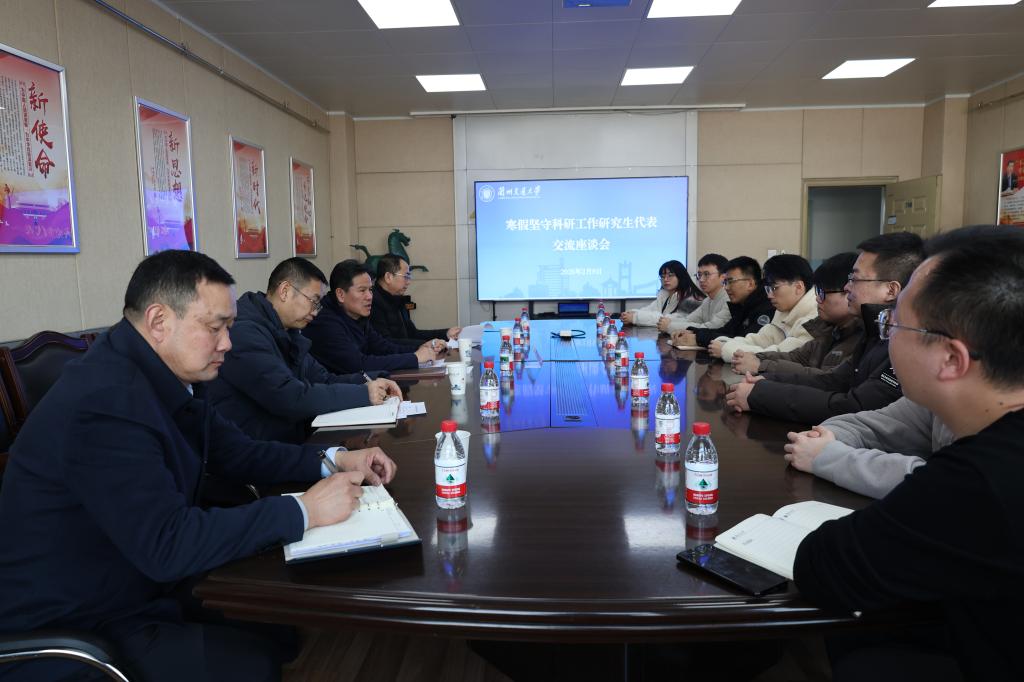 在实验五号楼七楼会议室,狄书记与学校8名寒假留校参与科研和论文撰写的博士、硕士研究生代表亲切座谈,同学们分别汇报了各自的学习科研进展与假期安排。狄书记仔细倾听,关切询问同学们在校期间的生活保障和科研条件,对他们勤奋钻研、刻苦努力的学习态度表示欣慰,并勉励大家珍惜时光、夯实基础、增强本领,努力成长为堪当民族复兴大任的时代新人。