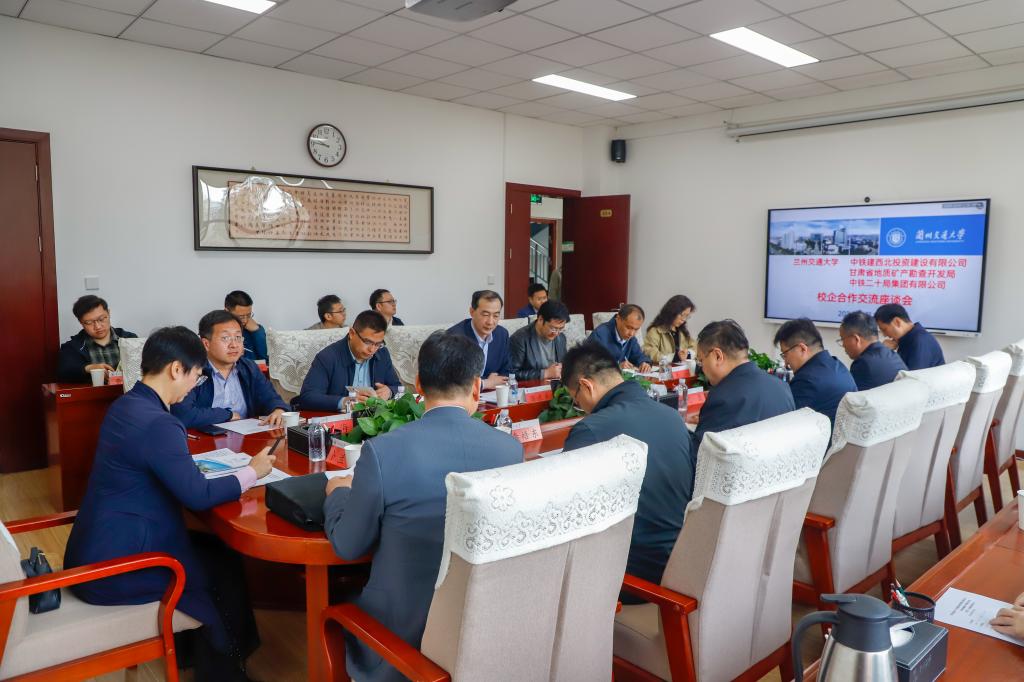 甘肃省地质矿产勘查开发局第二地质矿产勘查院、中铁二十局集团有限公司西北指挥部相关负责人,学校科技处、社会服务与成果转化中心、新能源学院、自动化与电气工程学院、环境学院等单位负责人及骨干教师代表参加座谈。