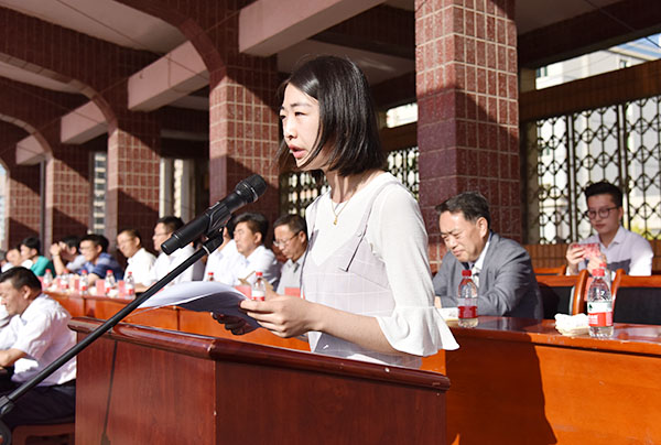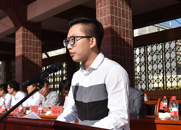 在校生代表2014级学生刘澎松、毕业生代表2017届硕士研究生沈佳琪先后发言,表达了对毕业生们美好的祝愿,对学校的感恩和对师生、对母校依依惜别之情以及践行青春梦想的豪迈情怀。