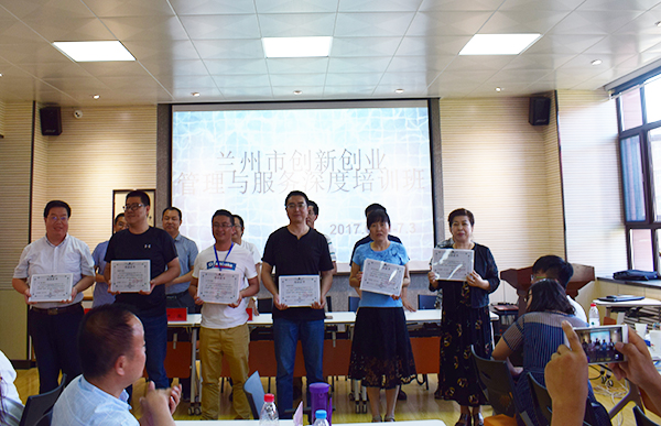 7月3日下午,由兰州市人力资源和社会保障局主办,我校承办的2017年度创新创业管理与服务深度培训班顺利结束。校党委副书记、常务副校长李引珍出席了培训班开班仪式并致辞。市人社局和我校相关部门的负责人及部分授课教师出席了结业典礼并为各位学员颁发了结业证书。