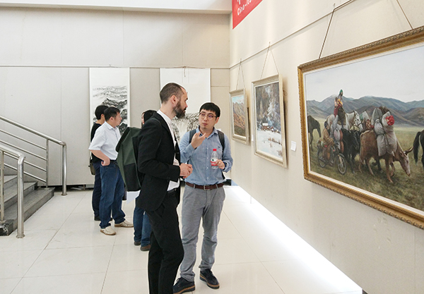 会后,来宾们在学院负责人的陪同下,参观了在我校时代美术馆举行的“中意美术设计作品展”。