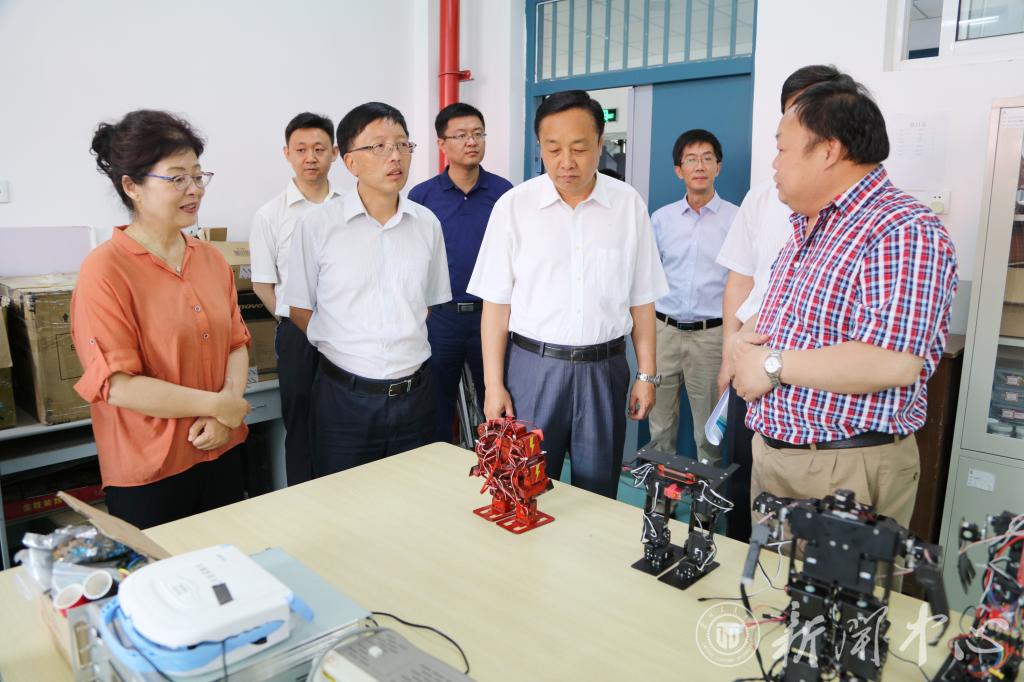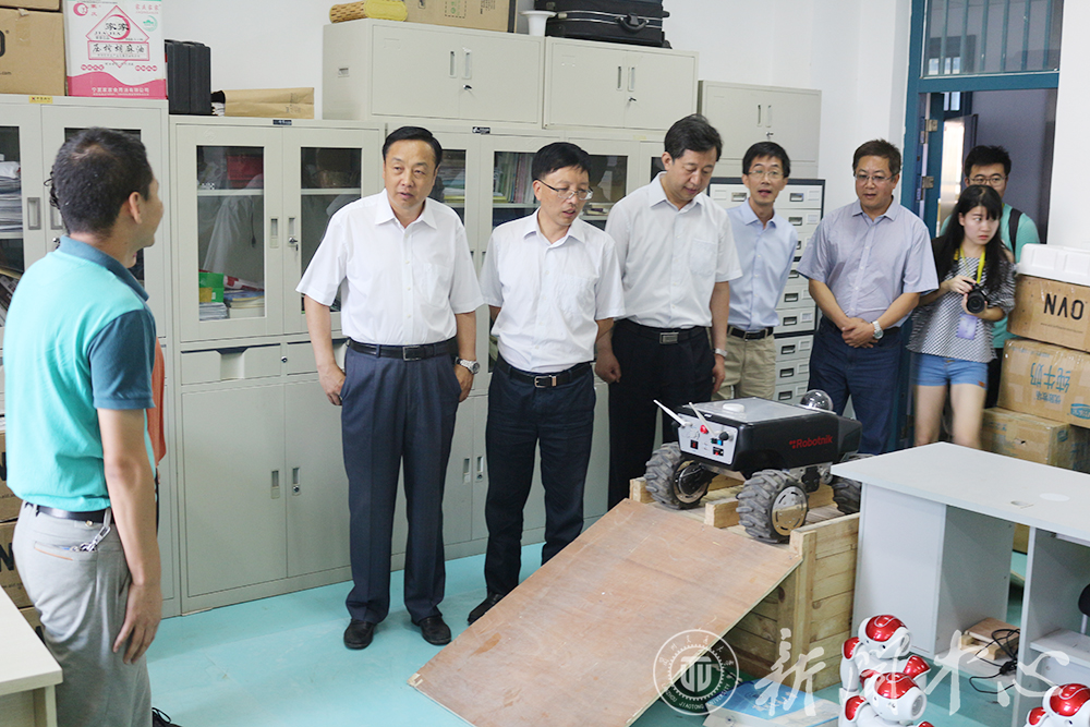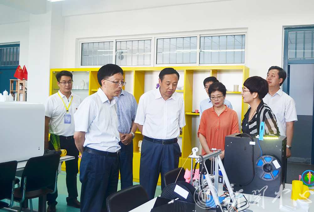 郝远副省长一行先后视察了机器人、智能车智能控制、电工电子、艺术设计、3D打印和结构设计等创新基地,听取了基地的育人情况汇报,查看了同学们制作的创新作品,了解了基地在目前的互联网+、设计前沿、新工艺、新材料创作创新项目。