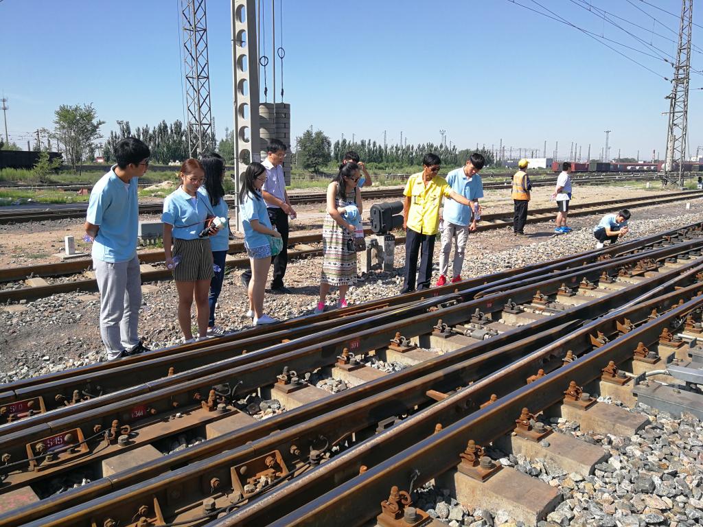 8月12日,测地学院实践团师生来到了呼和浩特铁路局包头工务段。工务段是铁路系统的基层单位,负责铁路巡道、铁路道口的看守、铁路线路及桥隧设备的保养与维修等工作。同学们在工务段线路车间主任、调度员等人的带领下,实地参观铁路线路和编组站。在车间主任的细致讲解中,队员们学习到了实现列车转弯的核心装置——道岔的组成与分类。工作人员和带队老师的现场讲解,极大的帮助了同学们了解了铁路建设的基本原理和新技术的运用,为进一步学习相关理论课程奠定直观的实践基础。