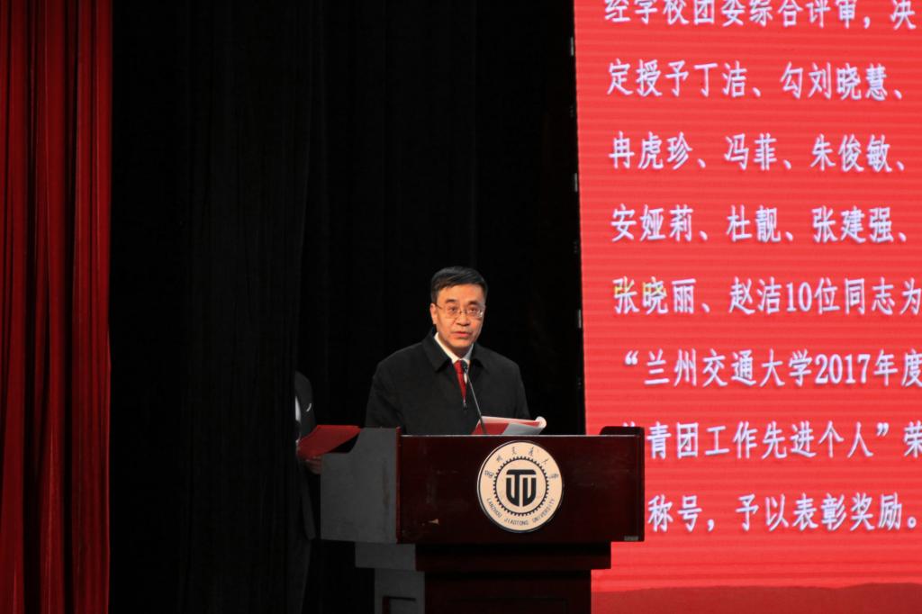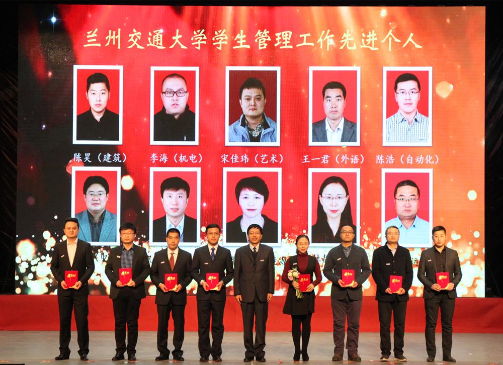 12月21日下午,2017年兰州交通大学学生工作表彰大会在学校大礼堂举行。校党委书记王萍,校长杨子江,党委副书记、常务副校长李引珍,副校长陈兴冲,党委副书记买寿清,副校长马军党、党建武等校领导出席大会。中国电信甘肃公司党委书记、总经理秦学寿,兰州铁路局人事处副处长岳令,中天科技集团副董事长丁铁骑,甘肃华成建筑安装工程集团有限责任公司董事长范效彩应邀出席大会。