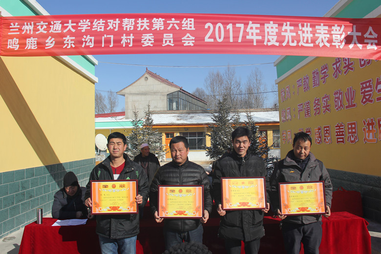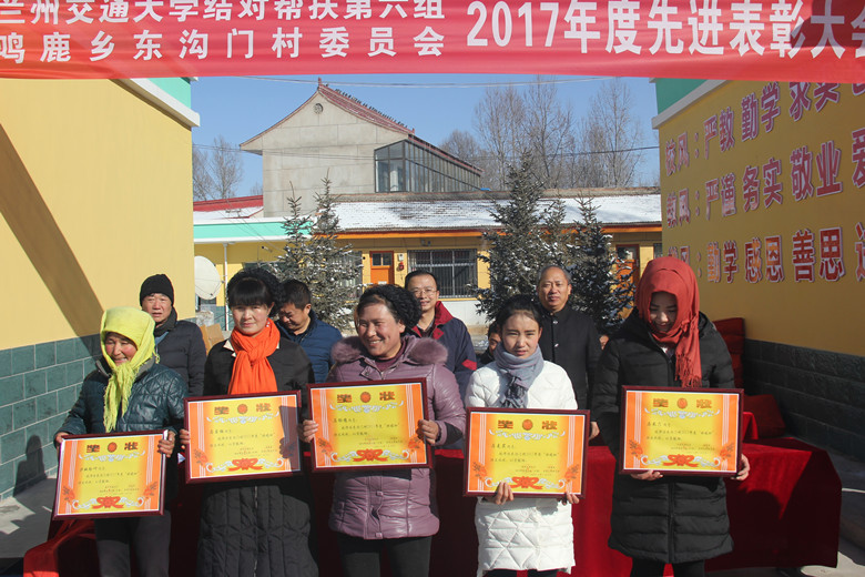 帮扶工作第六组负责人宣读了2017年开展好媳妇、好婆婆、五好家庭、先进教育工作者、先进村务工作者、先进党务工作者、村两委先进个人及精神文明先进个人8个奖项的表彰决定。刘振奎副校长和其他参会领导为受表彰的个人颁发了奖品和奖状。