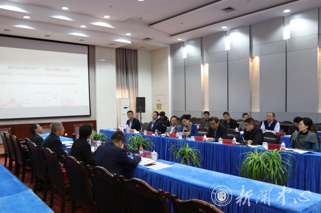 校党委副书记买寿清以《提升思政教育水平,强化立德树人效果,将贯彻落实全国全省高校思政工作会议精神不断引向深入》为题做了全面汇报。