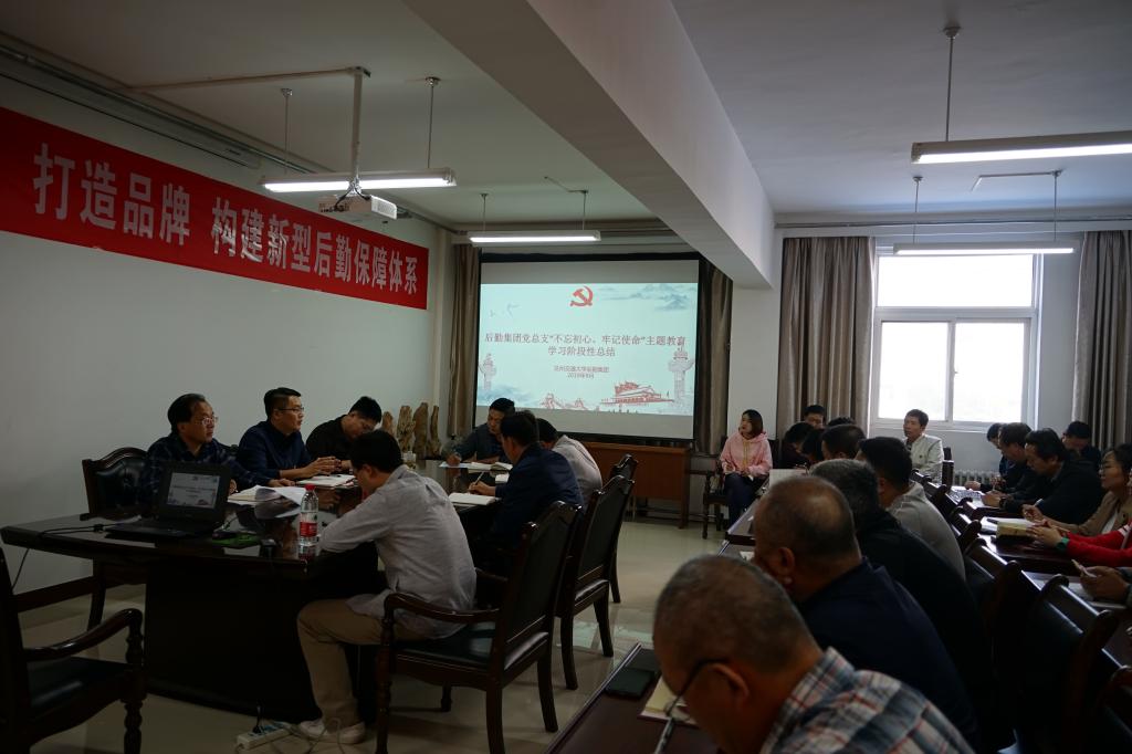 9月25日上午,后勤集团党总支在集团三楼会议室召开“不忘初心、牢记使命”主题教育阶段性总结会议暨专题党课教育活动。学校“不忘初心,牢记使命”巡回指导组成员,集团全体领导干部及党员等40余人参加了会议。