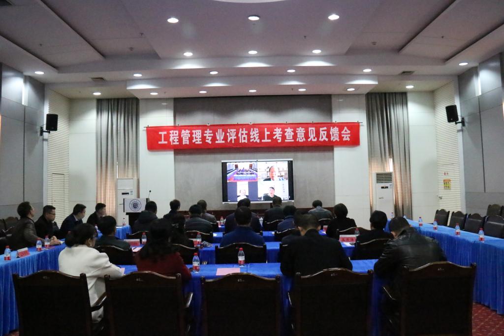 10月30日上午,住房和城乡建设部高等学校工程管理专业评估专家组完成对我校工程管理专业的各项线上评估考查内容,在国际会展中心三楼会议室召开了线上考查意见反馈会。专家组组长天津大学张连营教授主持会议,专家组成员沈阳建筑大学齐宝库教授、中国中铁三局集团有限公司贾定祎教授级高级工程师,我校副校长陈兴冲出席会议,学校相关职能部门主要负责人、土木学院领导、学院教学督导及工程管理专业全体教师参加了反馈会。