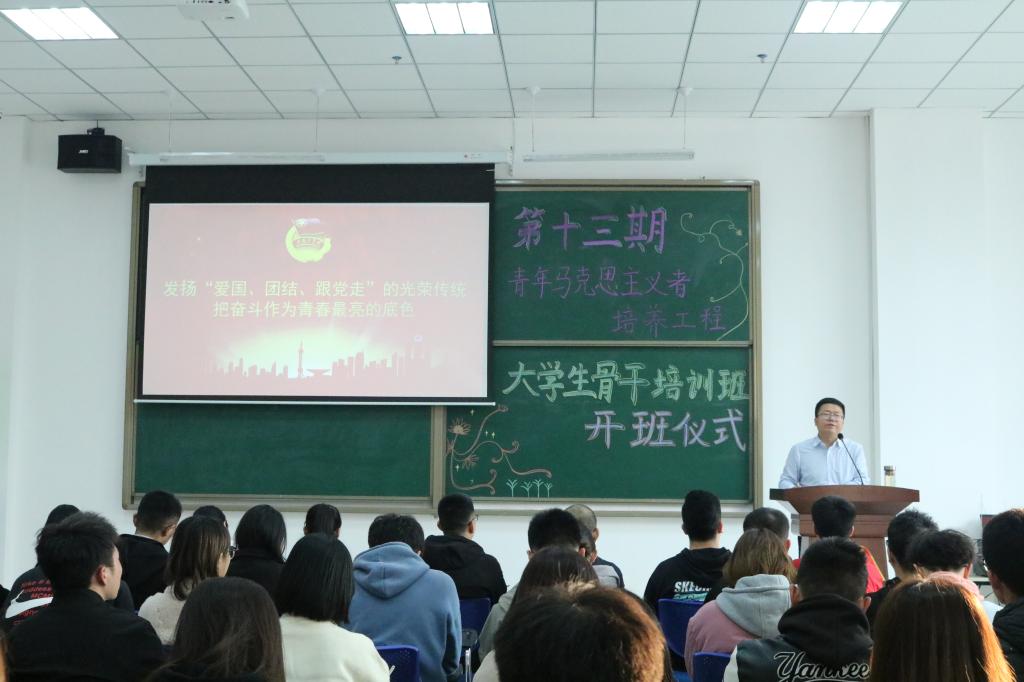 为响应国家培养青年马克思主义者的号召,深入实施青年马克思主义者培养工程,11月12日下午,学校在大学生活动中心综合多功能厅举办第十三期青年马克思主义者培养工程“大学生骨干”培训班开班仪式。校团委相关负责人及来自各学院、学生组织的60名大学生骨干培训班学员参加了此次仪式。
