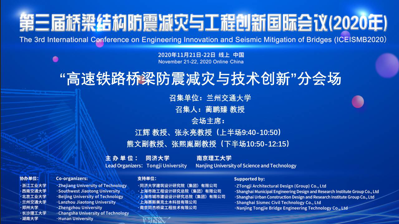2020年11月21-22日,第三届桥梁结构防震减灾与工程创新国际会议(线上)顺利召开,会议由同济大学、南京理工大学主办,我校与浙江工业大学、西南交通大学、北京工业大学、郑州大学、长沙理工大学和湖南大学联合协办。