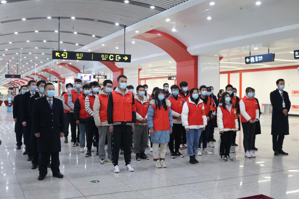 仪式结束后,校团委负责人和志愿者代表参观了兰州地铁东方红广场站车站控制室和站厅文化墙。