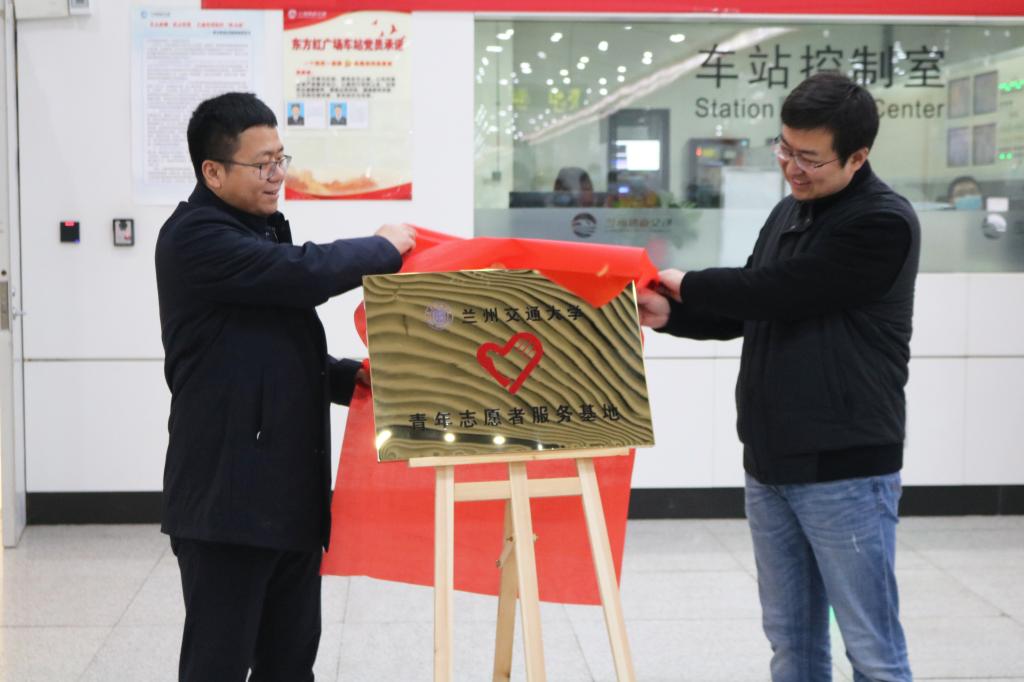 仪式上,兰州市轨道交通有限公司和我校团委负责人分别致辞。运营分公司负责同志介绍了志愿者工作具体安排。运营分公司团委与我校团委签订志愿者服务协议,双方负责同志共同为“兰州交通大学——兰州地铁志愿服务基地”揭牌。