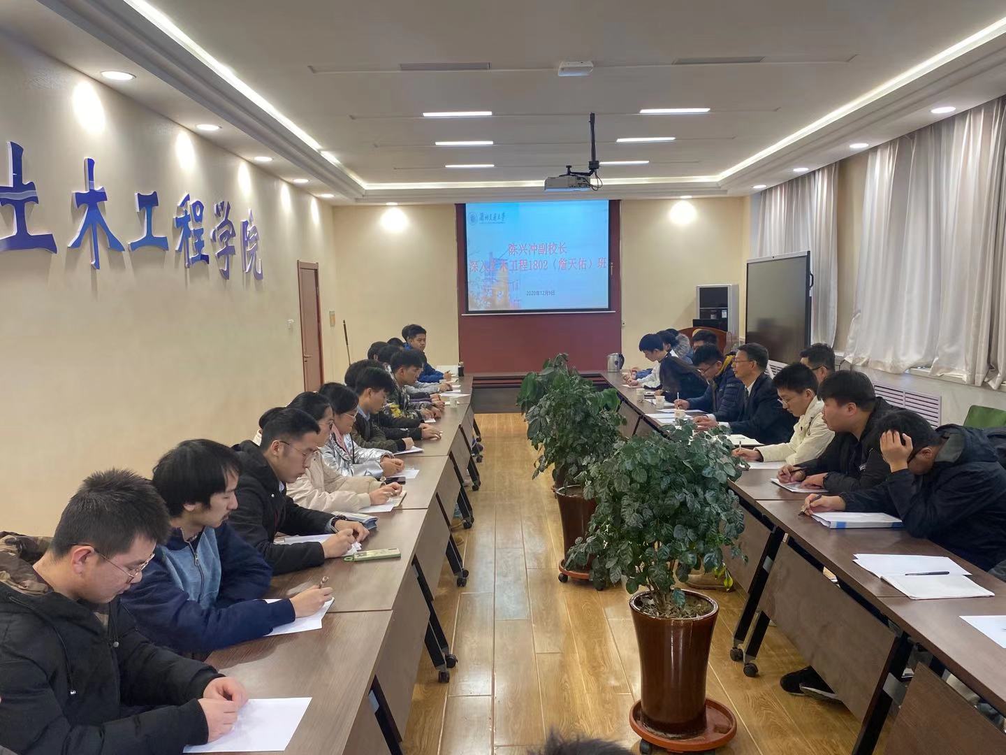 12月9日,副校长陈兴冲深入土木学院铁道2003班、2004班《思想道德修养与法律基础》课堂听课。课后,陈兴冲与任课教师和学生进行了深入交流,对教师的教学内容、教学方法、教学效果等情况进行全面了解。陈兴冲鼓励同学们要努力学习,提高自己的思想政治水平,做社会主义国家优秀的建设者。当天下午,陈兴冲在土木学院303会议室,向2018级詹天佑班级全体学生领学了十九届五中全会精神,通过政治宣讲,加强新时代爱国主义教育,教育学生厚植爱国主义情怀,将来积极报效祖国,为国奉献。会后,陈兴冲与学生进行了互动,结合国内、学校和专业特色,寄语学生要德智体美劳全面综合发展,以个人成长为立足点,推进铁路事业发展,促进科技创新,推动国家发展,让学生高瞻远瞩,牢记个人的成长与国家的发展息息相关,国家的前途命运与每个人的发展紧密相连。