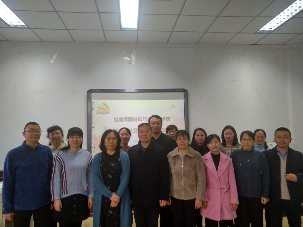 12月3日下午,副校长党建武深入外国语学院教工第三党支部,观摩了学院“立德树人”主题演讲比赛并参加了支部标准化建设交流座谈会,与支部全体党员进行了亲切的座谈交流。党建武指出,支部建设要始终贯彻党的教育方针,坚持培养德智体美劳全面发展的社会主义建设者和接班人;不断丰富支部政治建设的内容和形式,体现“外语+”特色,紧抓“双万计划”机遇,加强一流课程和一流专业建设,将立德树人、课程思政等理念纳入课程建设和专业建设之中。